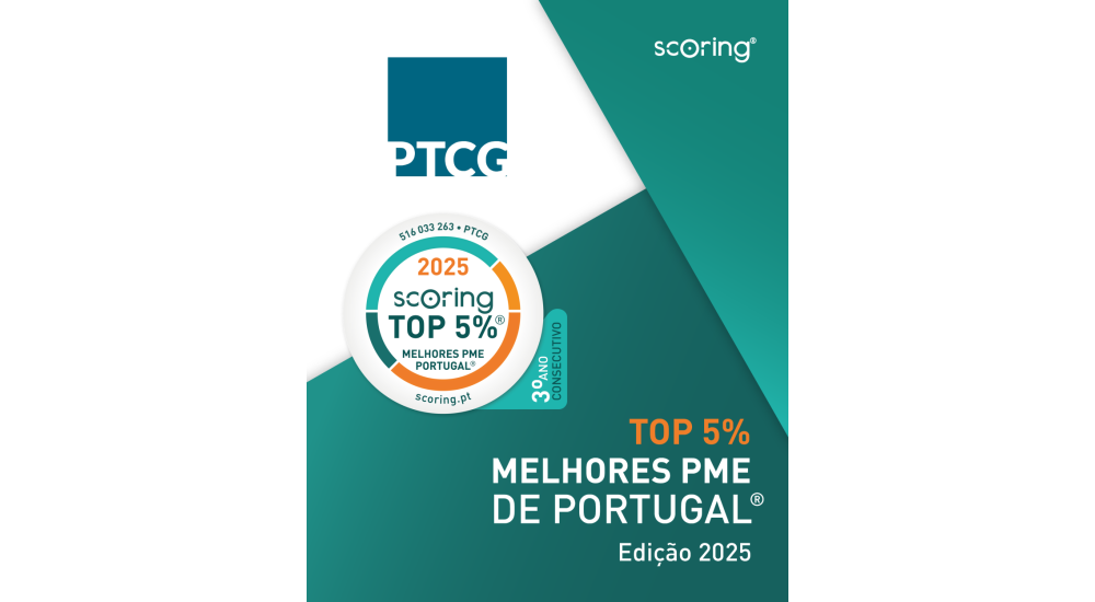 Pelo 3º ano consecutivo, a PTCG foi certificada pela Scoring com um Índice de Desempenho e Solidez Financeira (IDS) “Excelente”, sendo classificada no TOP 5% Melhores PME de Portugal.